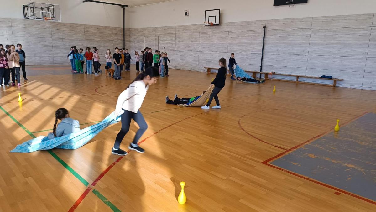 V tělocvičně jsme společně s odd. Lišek a Kuřátek uspořádali netradiční olympiádu. Děti soutěžily v zábavných disciplínách, jako byl netradiční hokej, slalom, biatlon a jízda na bobech. Na závěr proběhlo slavnostní vyhlášení a všechny děti si odnesly drobnou odměnu.