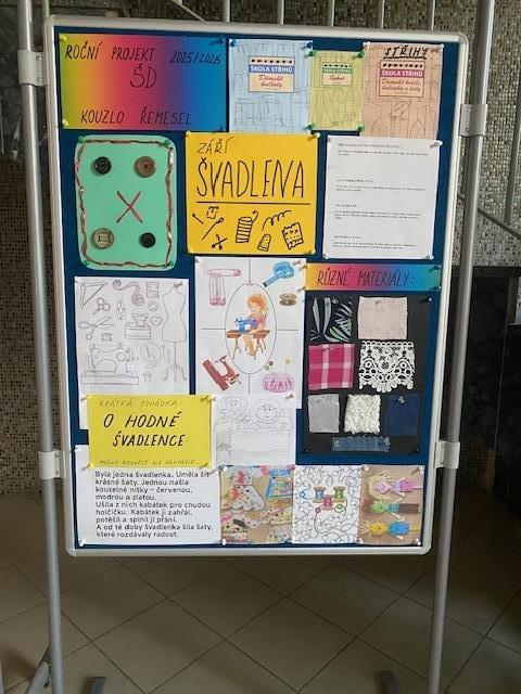 Na nástěnce ve vstupní hale na hlavní budově nám paní vychovatelka M. Synková připravila úžasnou prezentaci tohoto řemesla. Přečteme si pohádku Císařovy nové šaty, řekneme si něco málo o historii, vypracujeme pár zábavných pracovních listů a zkusíme si i pohrát s látkou, knoflíky a možná i s jehlou. Vše si budeme ukládat do desek, které děti přinesou na konci šk. roku domů.