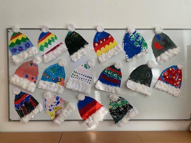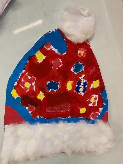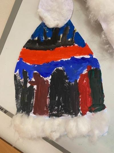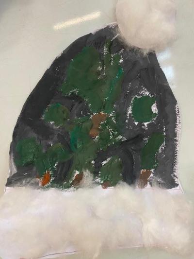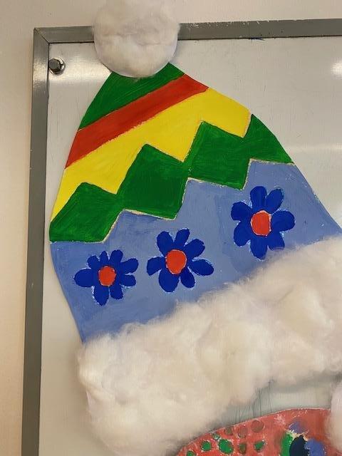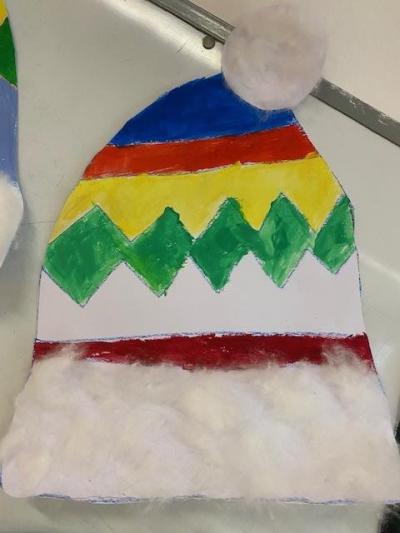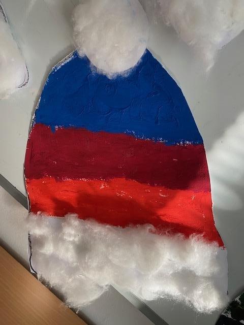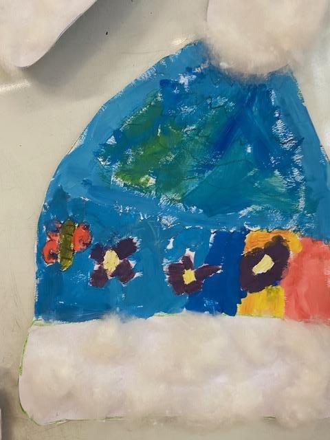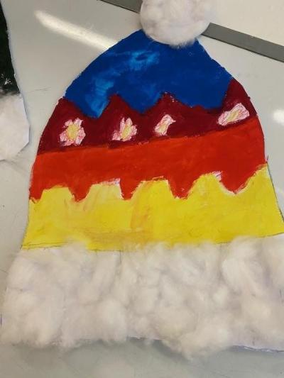 Čtvrtka A3, šablona, voskovky, tempery, nůžky, lepidlo, vata a čepice je na světě.