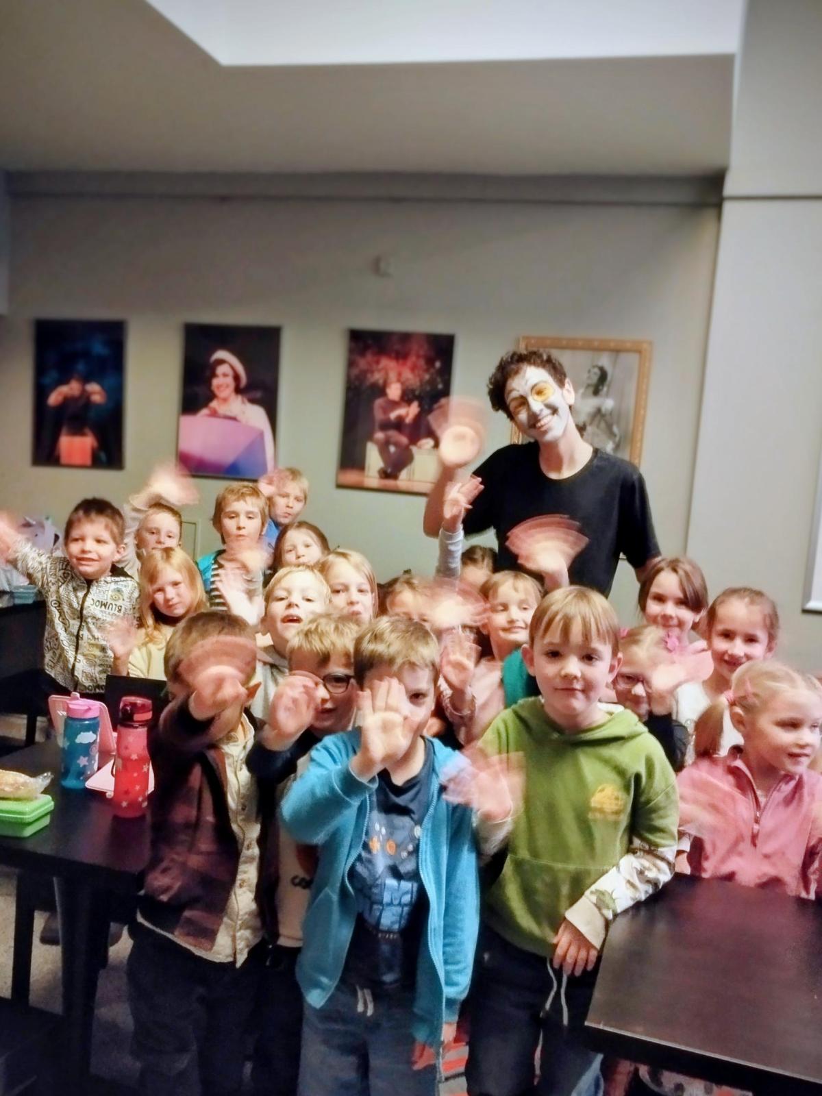 Dnes dopoledne jsme společně s paní učitelkou a s paní vychovatelkou navštívili divadlo Hybernia a zhlédli muzikál Madagaskar. Po skončení představení jsme si ve foyer divadla dali svačinku a paní vychovatelka nám přivedla představitele Krále Jelimána, se kterým jsme se společně vyfotili a který nám poděkoval, jak skvělé publikum jsme byli.
