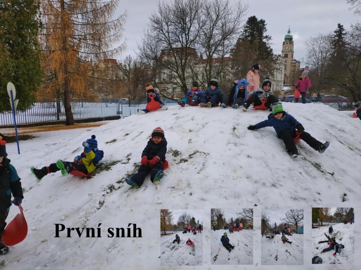 A protože nám Martin opravdu, i když jen na chvíli, přinesl sníh, vzali jsme lopaty a šli jezdit na náš kopeček.
