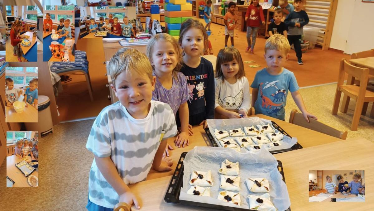 V ovocném týdnu jsme si nejen zopakovali všechny druhy ovoce, ale také každý přiložil ruku k dílu a zvládli jsme upéct chutný koláč i výtečné jablíčkové šátečky. A hned následující týden jsme věnovali zelenině, ze které si děti připravily celerovou pomazánku.
