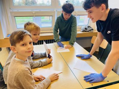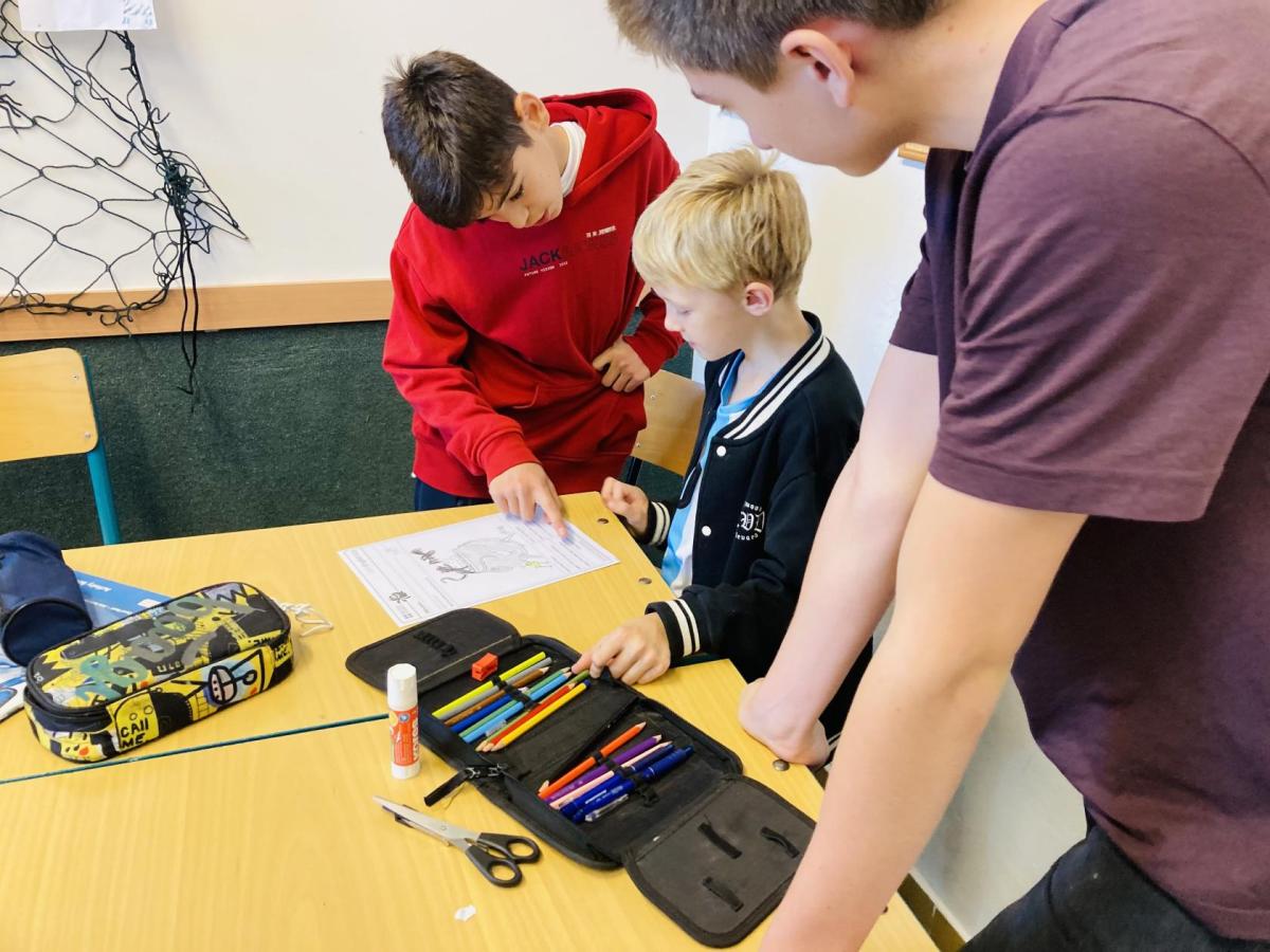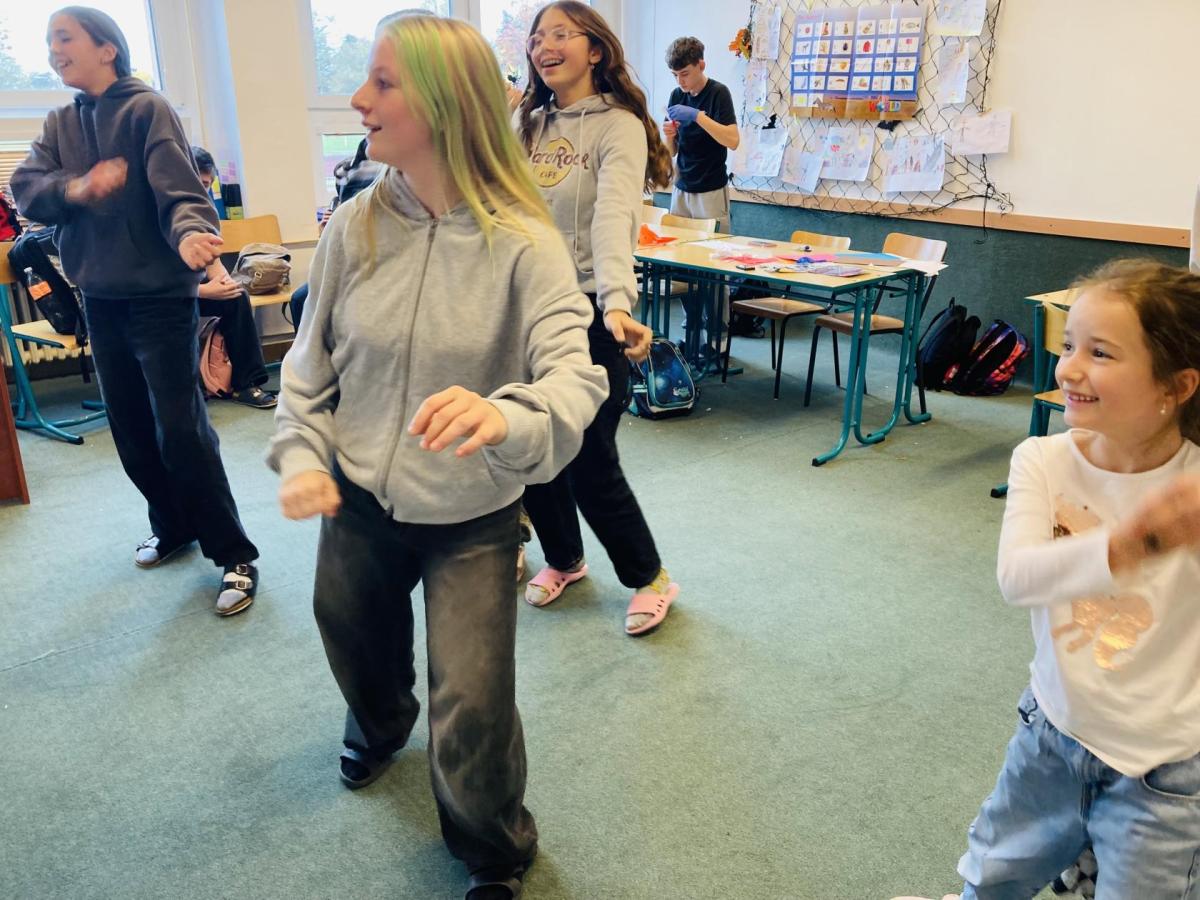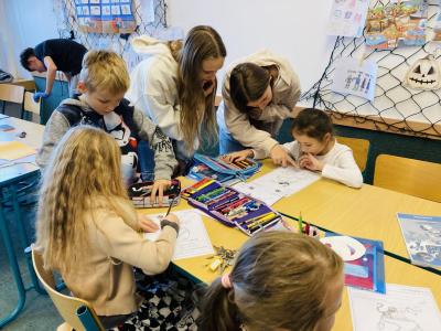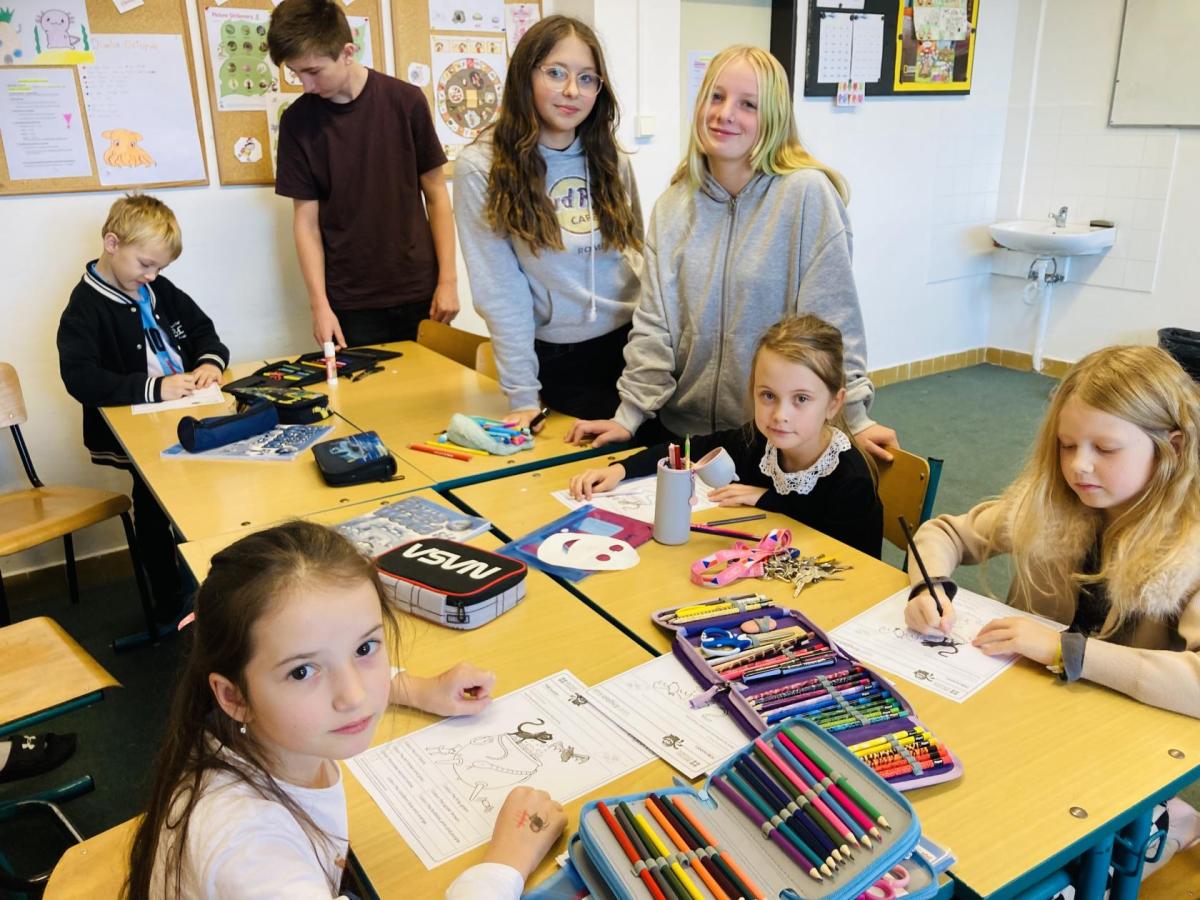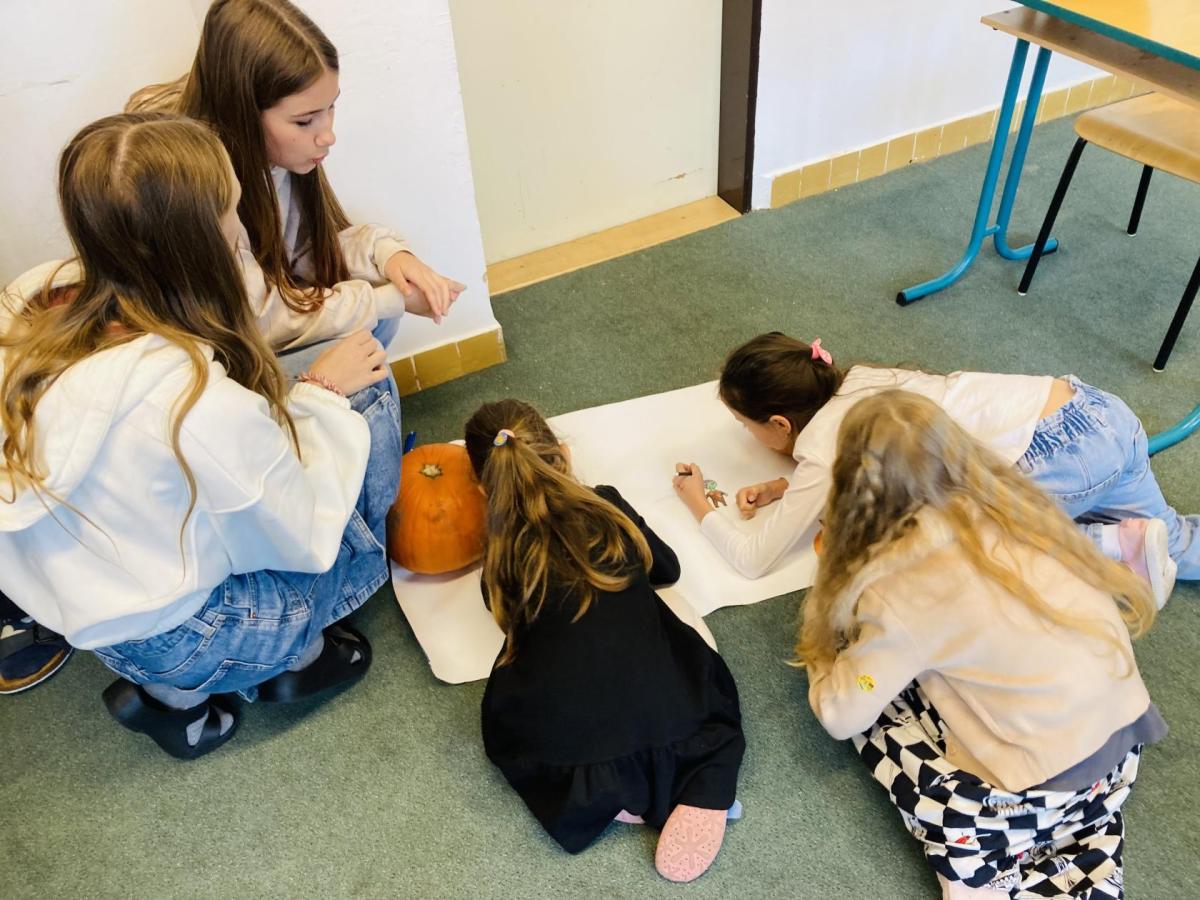 Žáci 8. tříd přišli v rámci předmětu OSV do hodiny angličtiny ve třídě 2.C. Společně se zúčastnili výuky na téma Halloween, pomáhali mladším žákům s výrobou tematických dekorací a s porozuměním novým anglickým slovíčkům.