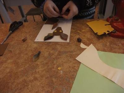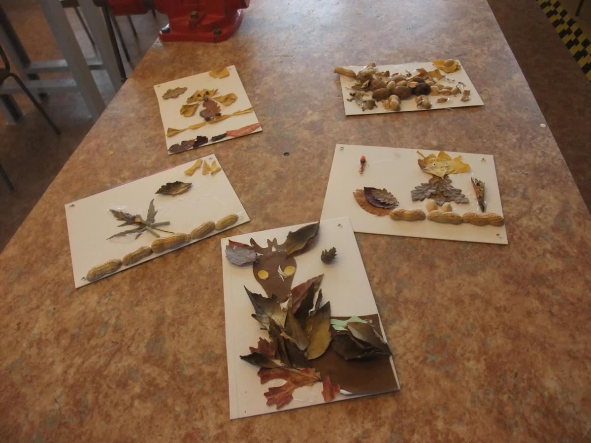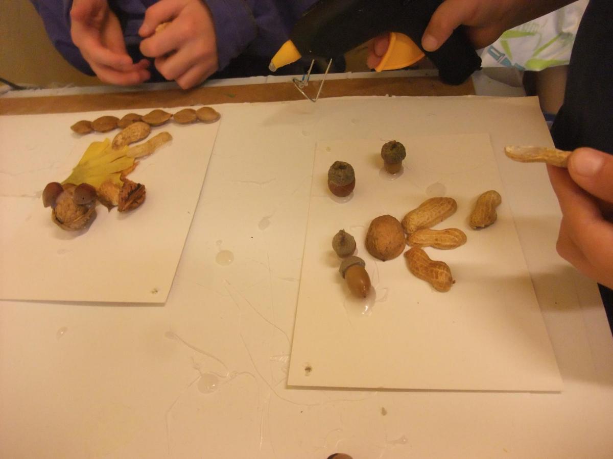 V hodinách pracovních činností žáci pátých tříd mimo jiné tvořili obrázky s využitím přírodních materiálů, které nabízí podzimní příroda – listy, plody, skořápky... Výrobky svědčí o skvělé nápaditosti a fantazii dětí.