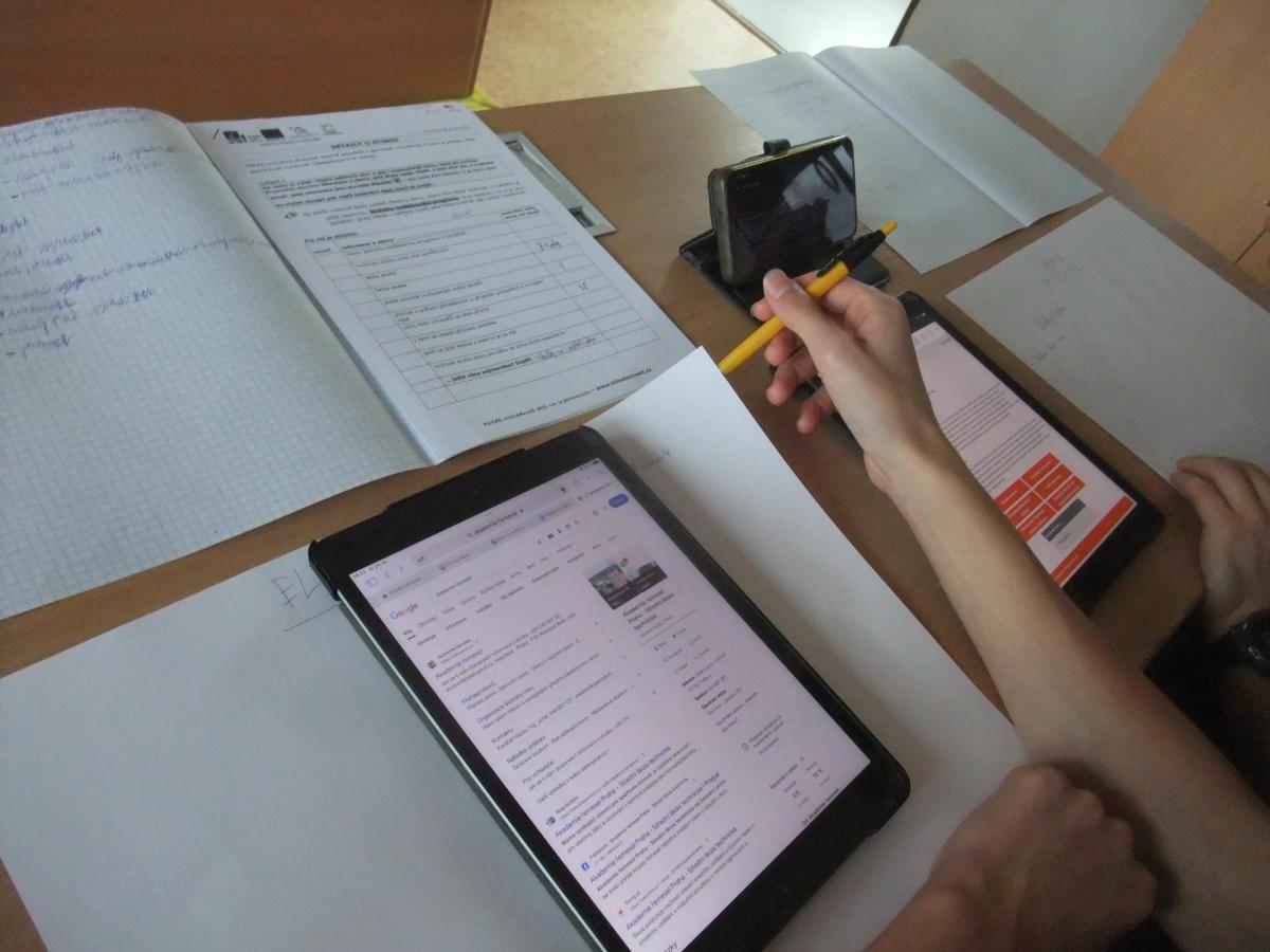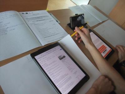 Během výuky pracovních činností pomáhají žákům 9. ročníků iPady při získávání informací pro volbu vhodné střední školy a budoucího povolání.