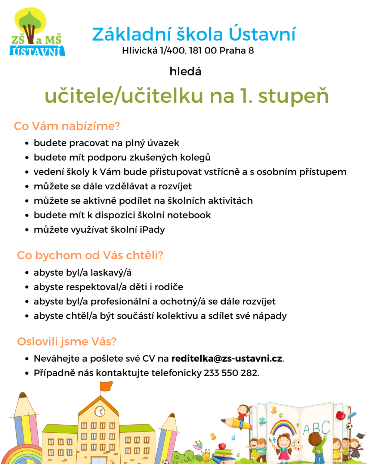 Přivítáme do týmu učitele/učitelku na 1. stupeň